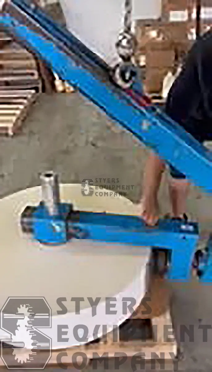 TURN ROLLS UP TO 330LBS, 3" OR 6" CORES, ELECTRICITY AND COMPRESSED AIR TO OPERATE.