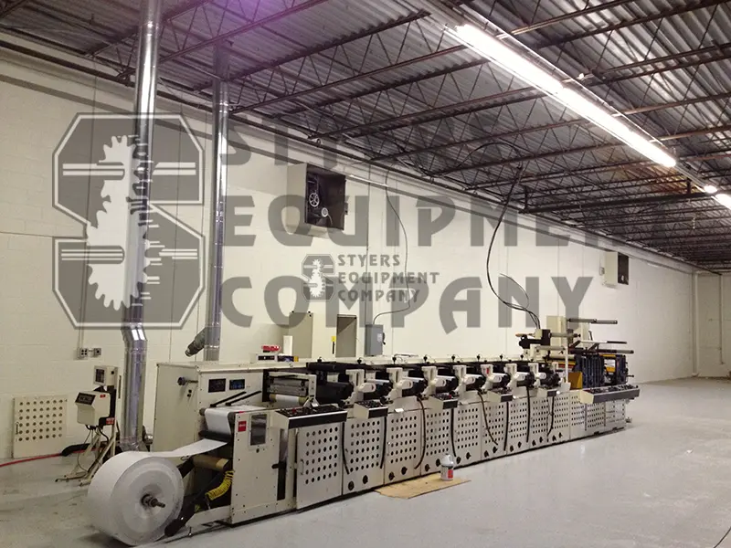 3 DIE STATIONS, SHEETING STATION, 2 PRODUCT REWINDS, 2 WASTE REWINDS, LAMINATING, TURNBAR, CONVEYOR, DELAM/RELAM, DOCTOR BLADES, HOT AIR DRYING, TWO GEW UV DRYERS, CORONA TREATER, 28 CERAMIC ANILOX, 132 PRINT CYLINDERS, SERVO DRIVEN INFEED/EXIT, 360 DEGREE GEAR BOXES ON DIE STATION