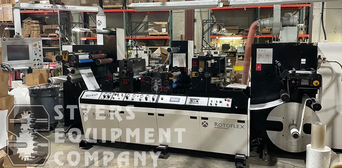 1 DIE STATION, SHEETING STATION, 1 PRODUCT REWIND, LAMINATING, UV DRYING, SCORE AND SHEAR SLITTING, WEB GUIDE, RECONDITIONED UV DRYER NEVER USED. M-7, E-7, C-7