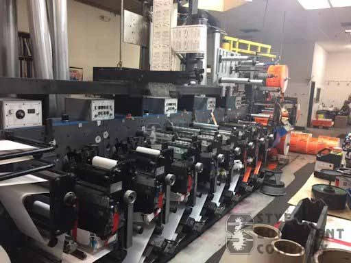 HELICAL GEAR PRINT STATIONS, DOCTOR BLADES, CERAMIC ANILOX ROLLERS, THREE ROTARY SCREEN PRINT HEADS TO INTERCHANGE WITH FLEXO STATIONS, WEB BREAK DETECTOR TANTEC SINGLE SIDE CORONA TREATER, DOYLE DOUBLE SIDE WEB CLEANER, BST PROMARK HANDYSCAN 2000 VIDEO INSPECTION SYSTEM, HOT AIR DRYING, 8 AETEK UV DRYERS, 8 WATER COOLED CHILL ROLLERS, 4 TON CHILLER, DIE HOIST, SCREENY EQUIPMENT FOR SCREEN PRINT HEADS.